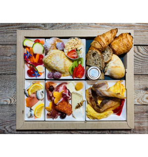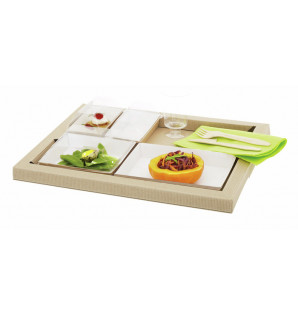 Le plateau peut être complété avec l'un de nos kits vaisselle Cubik, avec ou sans couvercles.