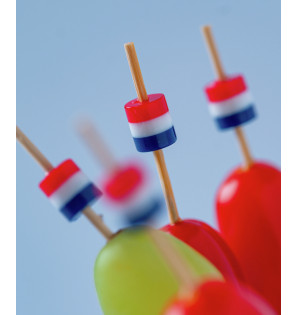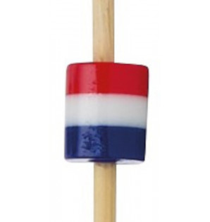 Stick avec perle tricolore bleu, blanc, rouge, à utiliser en pique apéritive ou en brochette. Une façon ludique d'animer vos buffets lors d'événements sportifs ou célébrations nationales... !