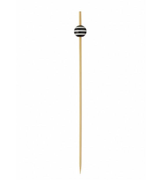 Stick avec une perle striée noir et blanc, pour un effet sobre et chic. A utiliser comme pique apéritive ou comme mini brochette.