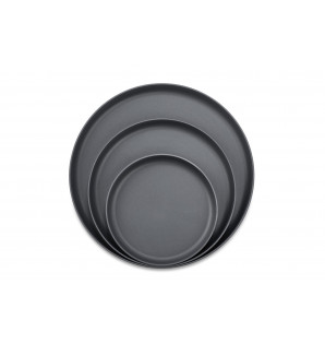 Les assiettes Santo en PP/talc sont disponibles en 3 couleurs (gris, noir, blanc) avec un couvercle dôme.