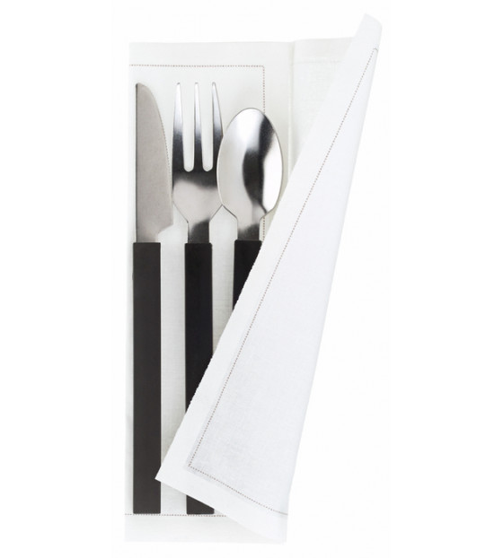 Serviette en coton prédécoupée avec un discret liseré contrasté. Livrée en rouleaux de 100 unités, elle est disponible : - en blanc TSR11E - en noir TSR11N Elle existe en rouleaux de 25 unités, format 210x210 mm blanc TSR21E et noir TSR21N