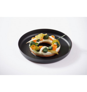 Les assiettes Santo en PP/talc sont disponibles en 3 couleurs (gris, noir, blanc) avec un couvercle dôme.