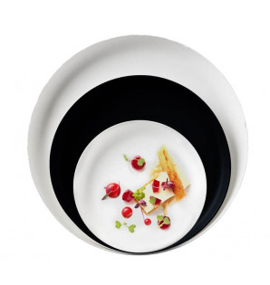 Assiette ronde blanche en PP/talc micro-ondable. Sa forme épurée et moderne, ainsi que sa robustesse en font une assiette parfaite pour une multitude d'usages.