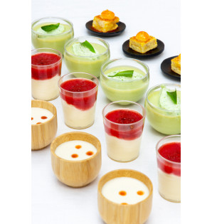 Petite verrine ronde en bambou de haute qualité, lavable et réutilisable. Pour des présentations écologiques et naturelles.