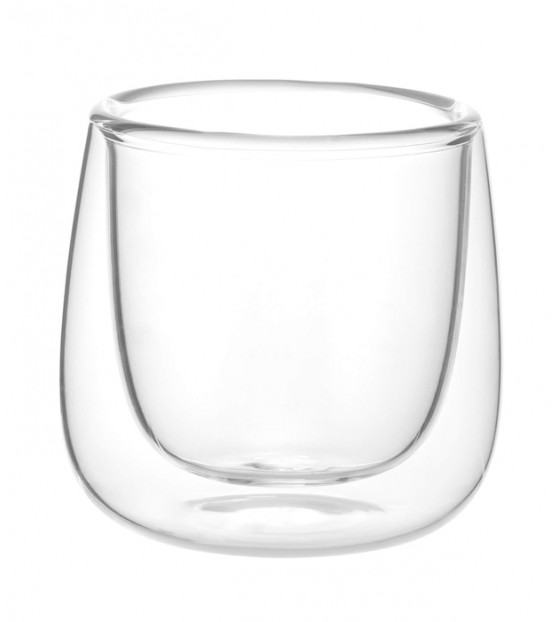 Verrine double paroi en verre borosilicate. Résistante aux chocs thermiques, elle est idéale pour le flambage ou un passage au four. Son contenu sera mis en valeur donnant une impression de lévitation et de légèreté.