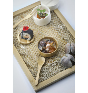 Petite verrine ronde en bambou de 3 cl. Idéale pour des sauces ou des mini apéritifs, elle apportera une touche naturelle à vos événements.