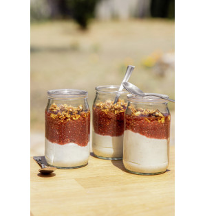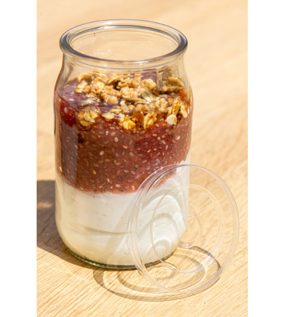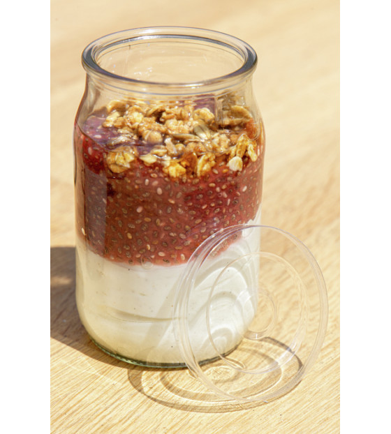 Pot Yogur en verre de 18 cl, pouvant être fermé de deux façons :