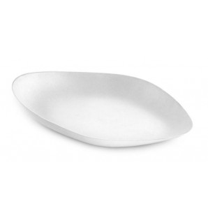 Grande assiette ovale asymétrique en bagasse blanche, aux légères ondulations pour apporter du mouvement à votre table. Assiette Cookplay disponible en 2 tailles : 160x120 (ACP16) et 240x220 (ACP24)
