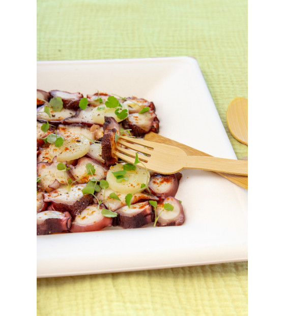 Couverts en bambou naturel, au design simple et épuré. La gamme Eco est composée de : - Couteau CBB18 - Fourchette FBB18 - Grande cuillère GCBB18 - Kit 4/1 KBA411 - Kit 6/1 KBA611