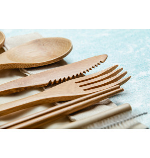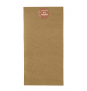 Couverts en bambou résistants, vendus en kit 4/1 (couverts, serviette). Agrémenté d'un vernis alimentaire, ces couverts de haute qualité sont parfaits pour vos formules sélectives de vente à emporter. La gamme de couverts Bambou Premium se compose de : - Couteau : CBB17, 170 mm - Fourchette : FBB17, 170 mm - Petite cuillère : PCB15, 115 mm Les couverts sont disponibles en vrac (100 de chaque) KBA300 et en kits : KBA312, KBA412, KBA612