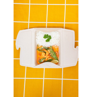 La barquette passe au four et au micro-ondes. Idéale pour la livraison ou la vente à emporter, nos Meal Box apporteront une touche écologique à votre marque.