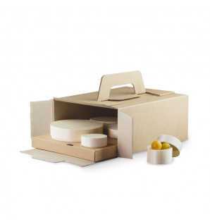 Prix 473,25 € HTConditionnement : 100YFO171 coffret Bento en carton kraft 175x175xh150 mm CBK17 1 boîte ronde 15 cl avec couvercles en peuplier français et caissettes en papier/PET Ø82 h40 mm WB86 1 boîte ronde 45 cl avec couvercles en peuplier français et caissettes en papier/PET Ø118 h50 mm WB120 1 boîte ronde 1 litre avec couvercles en peuplier français et caissettes en papier/PET Ø163 h60 mm WB160XL -