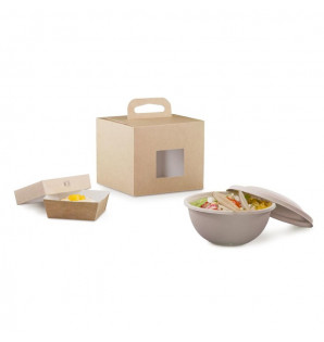 Prix 546,05 € HTConditionnement : 300YFO18Formule Bento avec 1 bol avec couvercle bagasse 100 cl et 1 barquette kraft 40 cl. Idéal pour un menu 1 personne. -