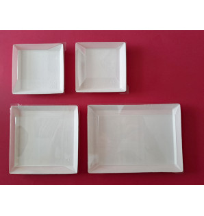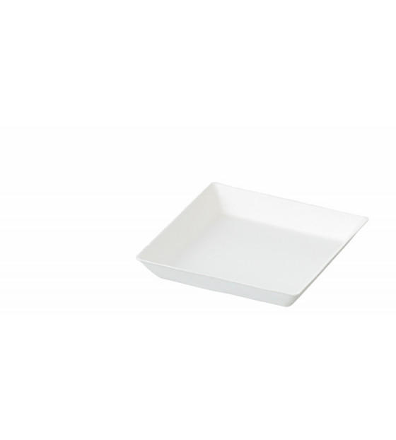 Petite assiette Cubik Fibra carrée en bagasse blanche qui passe au four et au micro-ondes. La gamme Fibra en grand conditionnement est composée de 4 assiettes : - XACF65 : 130 x 65 x h15 mm, et couvercle ACC6 - XACF10 : 100 x 100 x h15 mm, et couvercle ACC10 - XACF13 : 130 x 130 x h15 mm, et couvercle ACC13 - XACF18 : 180 x 130 x h15 mm, et couvercle ACC18 Les assiettes Cubik existent également en PS cristal ou noir, en bois, en bambou et en carton.