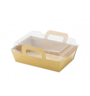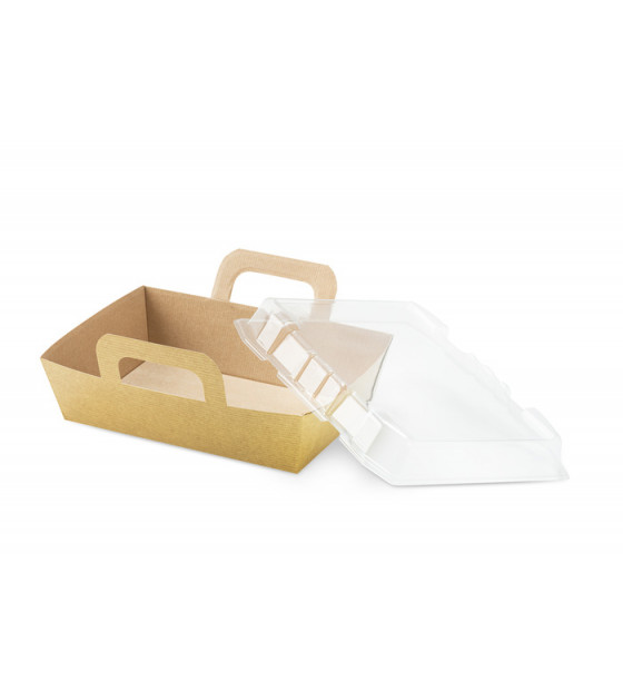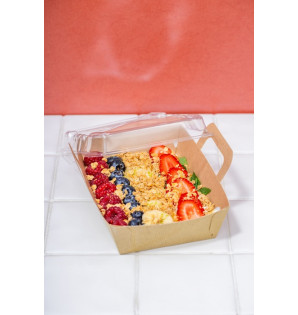 Barquette en carton kraft avec couvercle transparent à clipser en rPET.