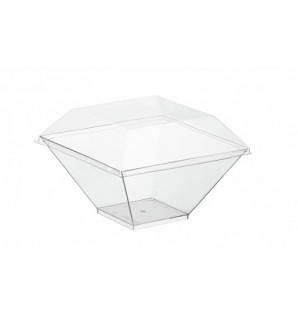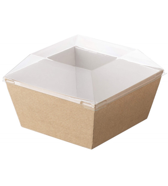 Couvercle transparent en PET recyclé et recyclable, adapté aux assiettes et bols Cubik 130x130 mm.Fabriqué en France