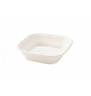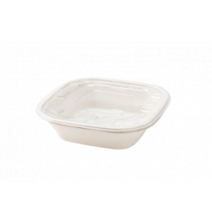 Saladier carré format XXL en bagasse naturelle pour livrer ou emporter de grandes salades, des viennoiseries ou d'autres solutions à partager. Il se complète avec un couvercle en RPET CS451 Egalement disponible en 2.25 litres SAB225