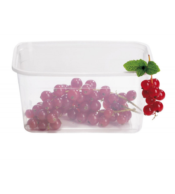 Barquette Traiteur transparente avec couvercle. En PP, elle peut passer de la congélation au micro-ondes. Elle est idéale pour le stockage ou la vente à emporter.