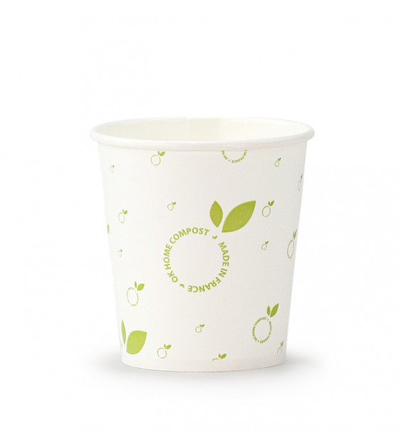 Ce sont les premiers gobelets mono-matériau carton SANS film plastique (ils ne nécessitent pas l'ajout du pictogramme règlementaire pour les gobelets ayant un pelliculage plastique).