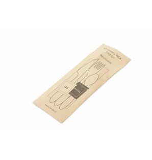 Kit couverts en inox comprenant au design moderne et raffiné, très résistants. Lavables et réemployables, ils seront votre allié pour votre service ou la vente à emporter. Les kits sont présentés dans une pochette kraft. La gamme est composée de : - kit 6/1 couverts, serviette sel et poivre KCE61 - en vrac, 100 unités de chaque couvert KCEVR