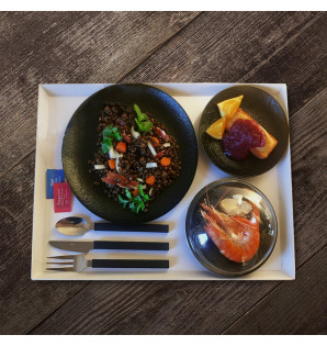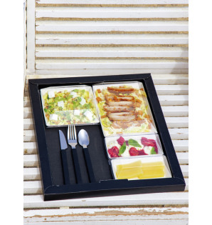 Kit couverts en inox avec manche en PS noir, sobre et contemporain. Les couverts Goa offrent un beau contraste de matières. Ils sont résistants, lavables et réemployables. La gamme Goa se décline en : - kit 3/1 couverts KCG31 - kit 4/1 couverts, serviette KCG41 - kit 6/1 couverts, serviette, sel et poivre KCG61 - en vrac 100 unités de chaque couvert KCGVR