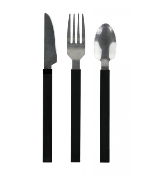 Kit couverts en inox avec manche en PS noir, sobre et contemporain. Les couverts Goa offrent un beau contraste de matières. Ils sont résistants, lavables et réemployables. La gamme Goa se décline en : - kit 3/1 couverts KCG31 - kit 4/1 couverts, serviette KCG41 - kit 6/1 couverts, serviette, sel et poivre KCG61 - en vrac 100 unités de chaque couvert KCGVR