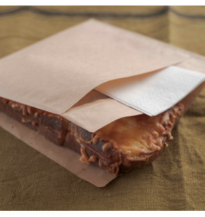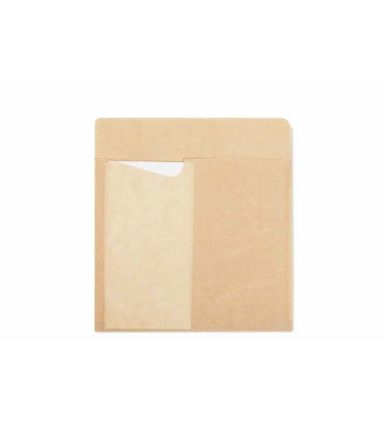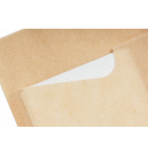 Pochette en kraft ingraissable avec une ouverture latérale très pratique pour insérer vos sandwichs ou paninis. Astucieuse, elle est vendue avec une serviette blanche en papier insérée sur le dessus. Certifiées FSC®, les pochettes Karman sont une solution écologique et originale pour la vente à emporter. Egalement disponible en petit format PSM145.
