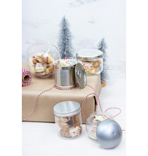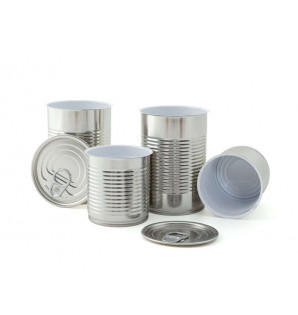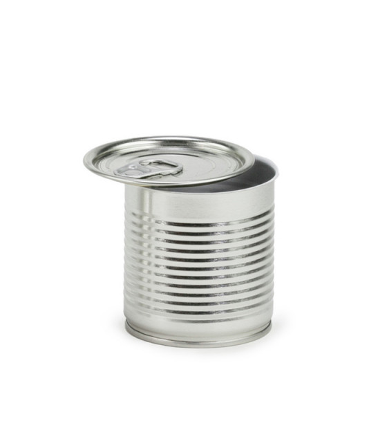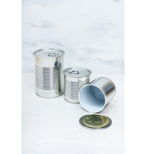 Boîte de conserve en métal gris intérieur vernis blanc (pour éviter toute oxydation) avec un couvercle à poser.