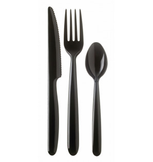 Kit couverts Luxor en PS noir très qualitatifs, composé d'une fourchette, un couteau, une cuillère, une serviette, sel et poivre. Avec leur design contemporain, ils sont agréables à utiliser, lavables et réemployables. La gamme Luxor se décline en 4 kits : - en noir brillant, kits 4/1 et 6/1 KL41N et KL61N - en transparent, kits 4/1 et 6/1 KL41C et KL61C