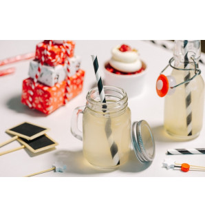 Mini mug en verre de 12 cl avec bouchon en métal gris à visser. Idéal pour des présentations à servir ou à emporter, avec une note ludique. Apte à la congélation, il est recyclable. Disponible en grand conditionnement de 120 u. XMMP12