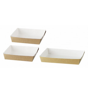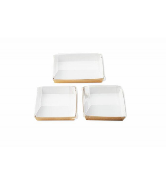 Kit d'assiettes Cubik Natural, fabriquées en carton kraft intérieur blanc avec un film PET. Elles peuvent passer au micro-ondes ou au four pour réchauffer un plat. Les assiettes et leurs couvercles en RPET (h30 mm) sont adaptés à nos plateaux repas Thema. Le kit version B comprend : - 1 assiette 180x130xh15 mm, AKN18 et couvercle ACC18 - 2 assiettes 130x130xh15 mm, AKN13 et couvercles ACC13