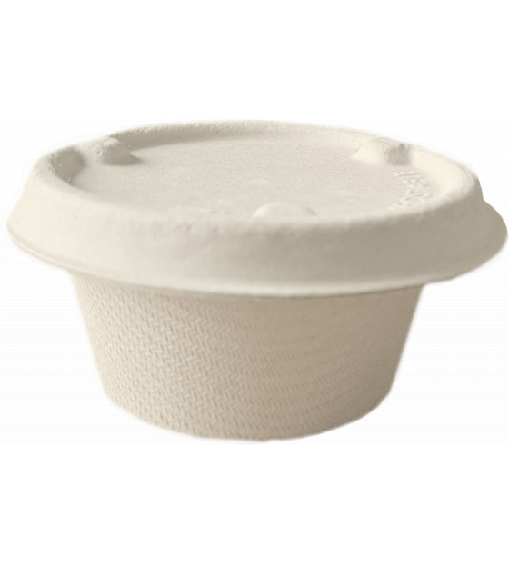 Pot à sauce ou mini verrine en bagasse. Un couvercle en même matière assurera une bonne hygiène et permettra un transport sécurité lors de vos livraisons CPSF60. L'ensemble est apte à la congélation, au four et au micro-ondes. Disponible en grand conditionnement XPSF60.