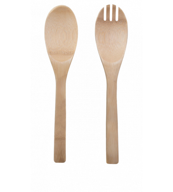 Set de 2 couverts à salade, en bambou, lavables et réutilisables. Mesurant 26 cm, ils s'adaptent aux saladiers de taille moyenne. Ils apportent un côté naturel qui convient très bien à toutes les ambiances de buffet.