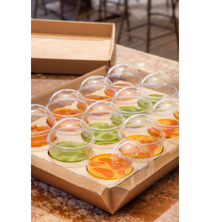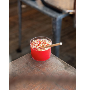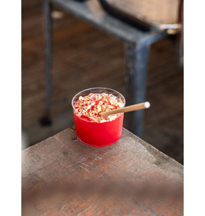 Pot transparent multi-usages, aux lignes rondes et épurées, empilable et recyclable. Il se ferme avec un couvercle plat CBD80, auquel vous pouvez ajouter un couvercle dôme CBB22 pour y insérer divers condiments, fruits secs ou autres décorations sucrées. Effet visuel garanti !