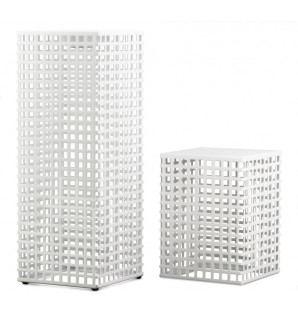 Totem est un présentoir ajouré en acier blanc, disponible en deux hauteurs (20 et 40 cm). Véritables objets de décoration, les Totem sont solides et réutilisables.