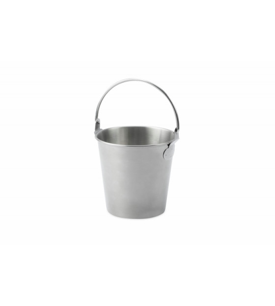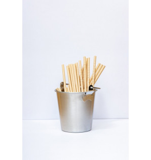 Contenant inox en forme de seau pour une mise à disposition de pailles, couverts en vrac, serviettes ou agitateurs. Il peut aussi tout simplement offrir une solution élégante pour se défaire de piques apéritives ou noyaux d'olives lors de vos événements. Lavables et réutilisables, les seaux peuvent se stocker empilés.