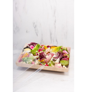 Fabriqué en France, en bois issu de forêts françaises, le plateau Hopla est le résultat d'une conception innovante : il se monte par simple clipsage de ses 4 angles, façon pièce de puzzle. Conditionné et livré à plat, il permet un gain de place de stockage appréciable. Un couvercle transparent garantit un transport sécurisé et hygiénique PACV1. Hopla est également disponible au format Atlas 1/2 PHP12