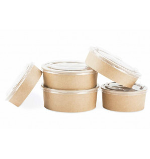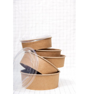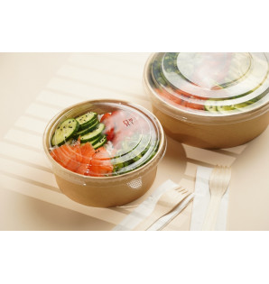 Pot rond ultra résistant, en kraft et PE, adapté à la vente à emporter. Un couvercle en PP (vendu à part) sécurise le transport tout en offrant une parfaite visibilité de son contenu CPOK190