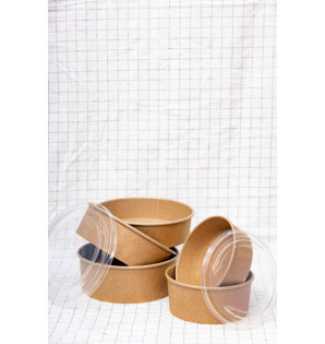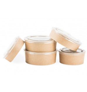 Pot rond ultra résistant, en kraft et PE, adapté à la vente à emporter.