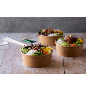 Pot rond ultra résistant, en kraft et PE, adapté à la vente à emporter.