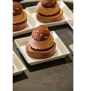 Petite assiette Cubik Fibra carrée en bagasse blanche qui passe au four et au micro-ondes. La gamme est composée de 4 assiettes : - ACF65 : 130 x 65 x h15 mm, et couvercle ACC6 - ACF10 : 100 x 100 x h15 mm, et couvercle ACC10 - ACF13 : 130 x 130 x h15 mm, et couvercle ACC13 - ACF18 : 180 x 130 x h15 mm, et couvercle ACC18 Les assiettes Cubik existent également en PS cristal ou noir, en bois, en bambou et en carton.