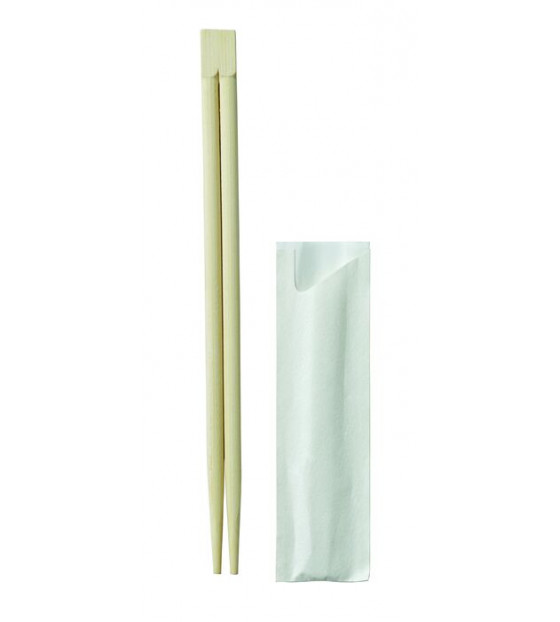 Baguettes chinoises en bambou naturel, protégées dans une pochette en papier individuelle. Disponibles en grand conditionnement de 600 pièces XBGB210