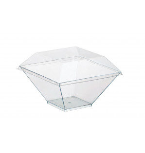 Prix 69,05 € HTConditionnement : 200BCU25Bol saladier carré avec une large ouverture. En PS transparent, il est recyclable. La gamme de bols Cubik se décline en 3 contenances, cristal, noir ou kraft : 100 cl (170 x 170 x h 80mm) BCU100 et couvercle CBC17 55 cl (130 x 130x70mm) BCU55C , BCU55N , BCN55 et couvercle ACC13 25 cl (110 x 110 x h 40mm) BCU25 , BCN25 et couvercle AC11C -