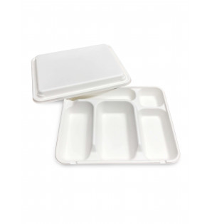 Prix 70,00 € HTConditionnement : 200PF5CPetit plateau repas en bagasse avec 5 alvéoles, dont 1 pour les couverts. Il peut se compléter avec un couvercle assorti CPF5F . L'ensemble peut passer de la congélation, au four ou au micro-ondes. Plateau Snack 5 est une solution économique pour les repas à livrer (collectivités, écoles, entreprises...). -