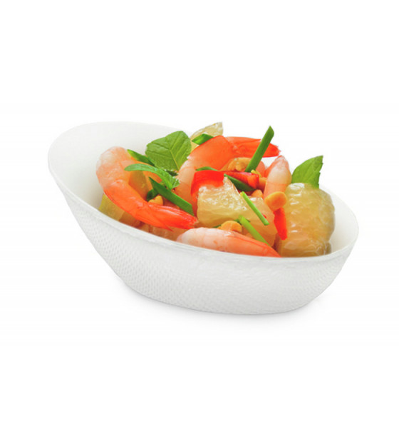 Mini coupelle en bagasse blanche, avec un rebord légèrement surélevé pour une bonne prise en main. En association avec notre gamme bagasse, elle contribuera à créer une ambiance naturelle sur toutes vos prestations.