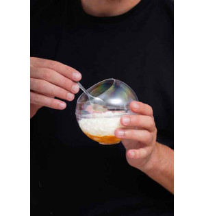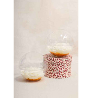 Un pot sphérique de 30 cl avec une ouverture sur la partie supérieure (Ø70 mm) pour faciliter les dégustations. En PS transparent, la gamme Perla se décline en deux contenances et en 2 versions, ouverte ou fermée :