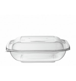 En PET transparent, l'ensemble est recyclable. Son grand volume le rend parfaitement adapté pour la vente à emporter de grandes salades-repas.
