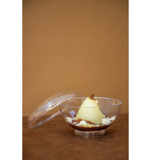 Prix 29,20 € HTConditionnement : 100CBG85Couvercle transparent en rPET recyclé recyclable, adapté au bol Organic 85 cl BGC85 Pratique, sa forme ondulée avec un à-plat permet d'empiler les bols pour des présentations verticales très esthétiques ! -