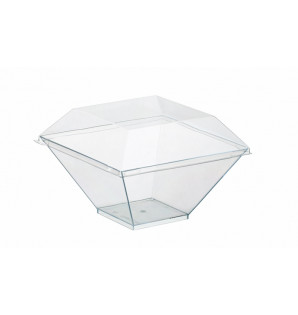 Prix 84,70 € HTConditionnement : 100BCU100Bol saladier carré avec une large ouverture. En PS transparent, il est recyclable. La gamme de bols Cubik se décline en 3 contenances, cristal, noir ou kraft : 100 cl (170 x 170 x h 80mm) BCU100 et couvercle CBC17 55 cl (130 x 130 x 70mm) BCU55C , BCU55N , BCN55 et couvercle ACC13 25 cl (110 x 110 x h 40 mm) BCU25 , BCN25 et couvercle AC11C -