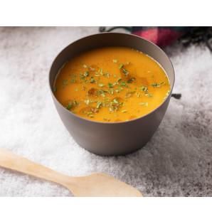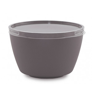 Bol gris et mat avec une belle texture imitation grès. Fabriqué en France à partir de PP avec ajout de talc (pour réduire l'utilisation de plastique), il est micro-ondable, lavable et réemployable.